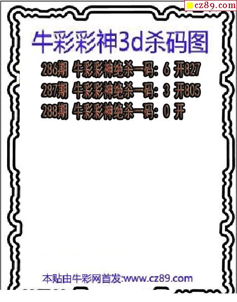 > 牛彩彩神杀码2025288期3d图谜(原创)