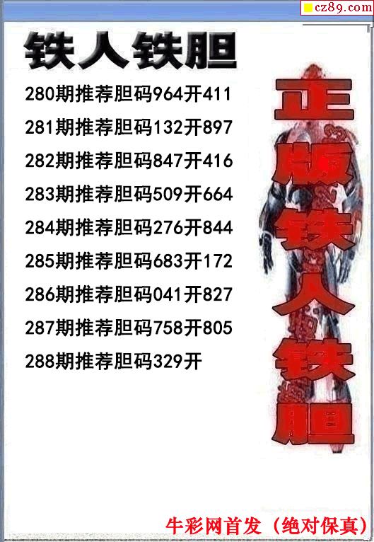 牛彩版3D预测彩报图25年288期打印版