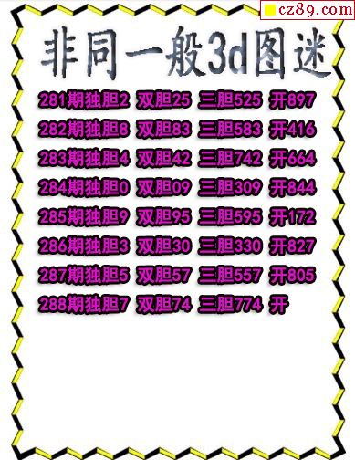 非同一般送胆2025288期3d图谜(原创)