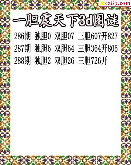 > 一胆震天下独胆2025288期3d图谜(原创)