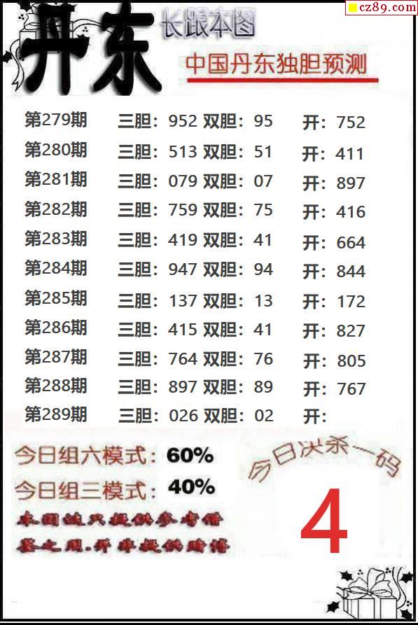 丹东独胆2025289期3d图谜