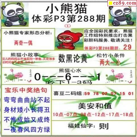 首页 > 排列3图谜 > 小熊猫2025288期体彩P3图谜
